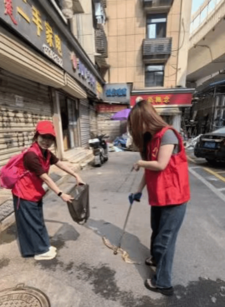 调研结束后,师生们立即投入清洁家园行动——清理楼道杂物、修剪公共绿植。在劳动间隙,机施小区自治小组负责人潘师傅动情讲述:当年这里是机施厂的职工宿舍和办公楼区,是最热闹的职工交流空间,现在连个歇脚交流的地方都没有。这些鲜活故事为后续设计提供了人文视角。孙馨老师强调:只有亲身参与社区服务,才能理解更新改造的真实需求。