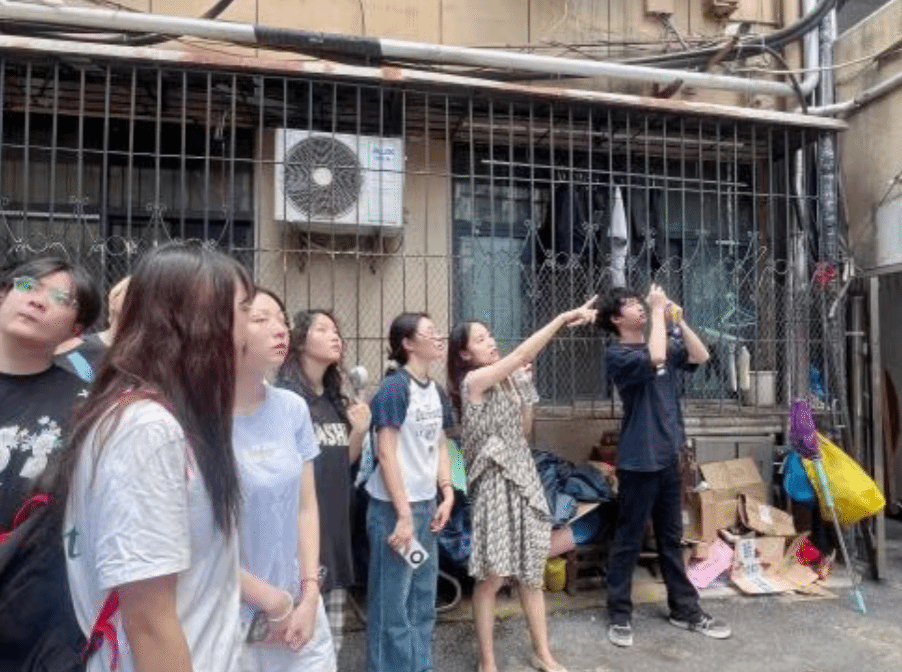 2025年9月5日下午,武汉传媒学院设计学院张纬、孙馨两位教师带领58名环境设计专业大四学生,赴洪山区博苑社区博文花园小区、机施老旧小区开展设计课程实地调研,并同步实施清洁家园志愿服务行动。本次活动通过专业考察与社区服务相结合的模式,探索设计教育与社区更新的深度融合。