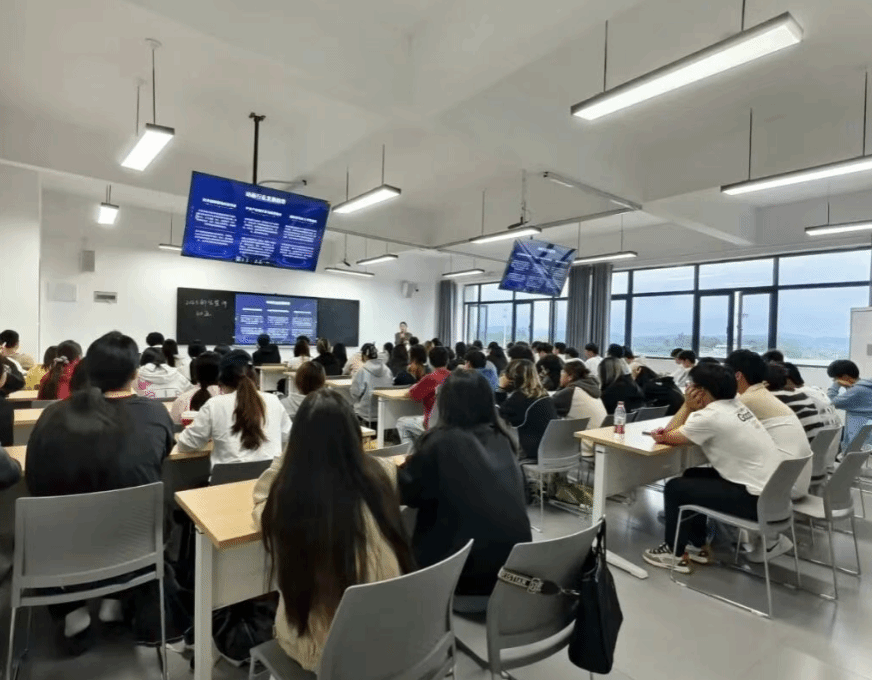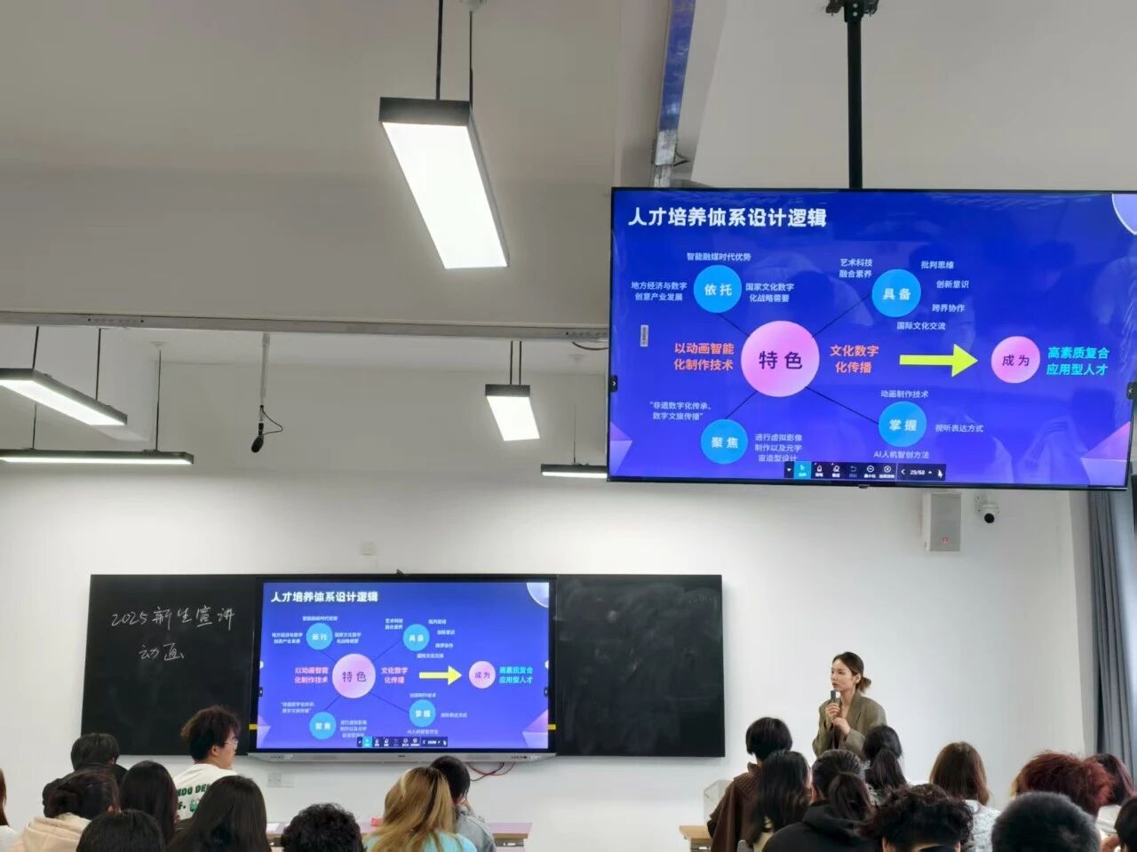 2025年9月25日15:55分,设计学院在大悟校区T3教学楼305教室举行了2025级动画专业新生的专业宣讲会,帮助新生破解专业学习痛点,明晰成长方向。本次主讲人为设计学院专业崔娅晨老师,参与人员为动画专业2025级全体新生。