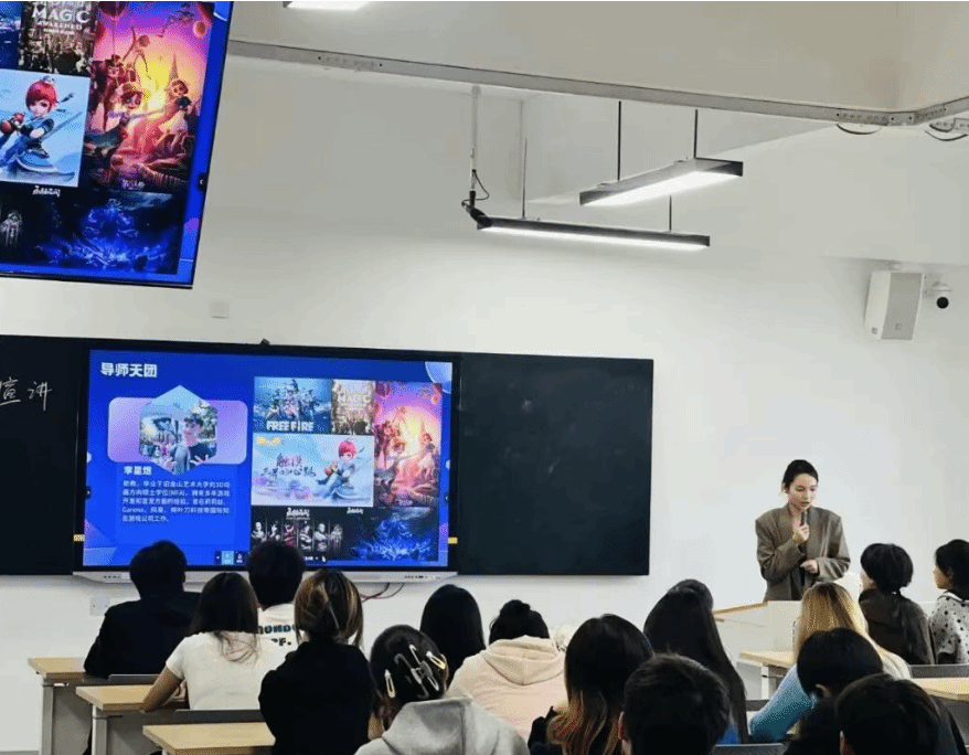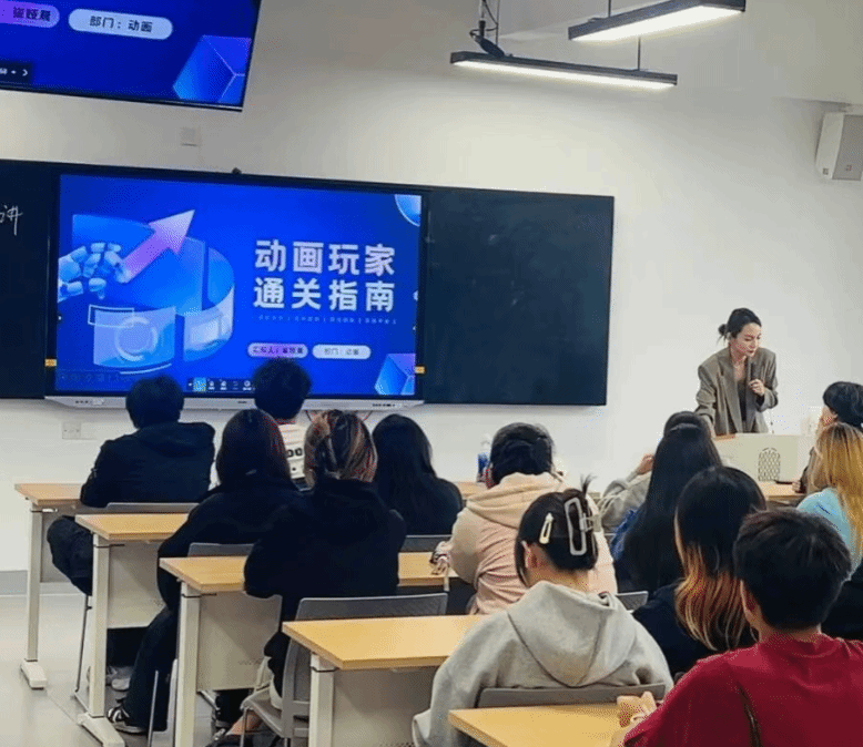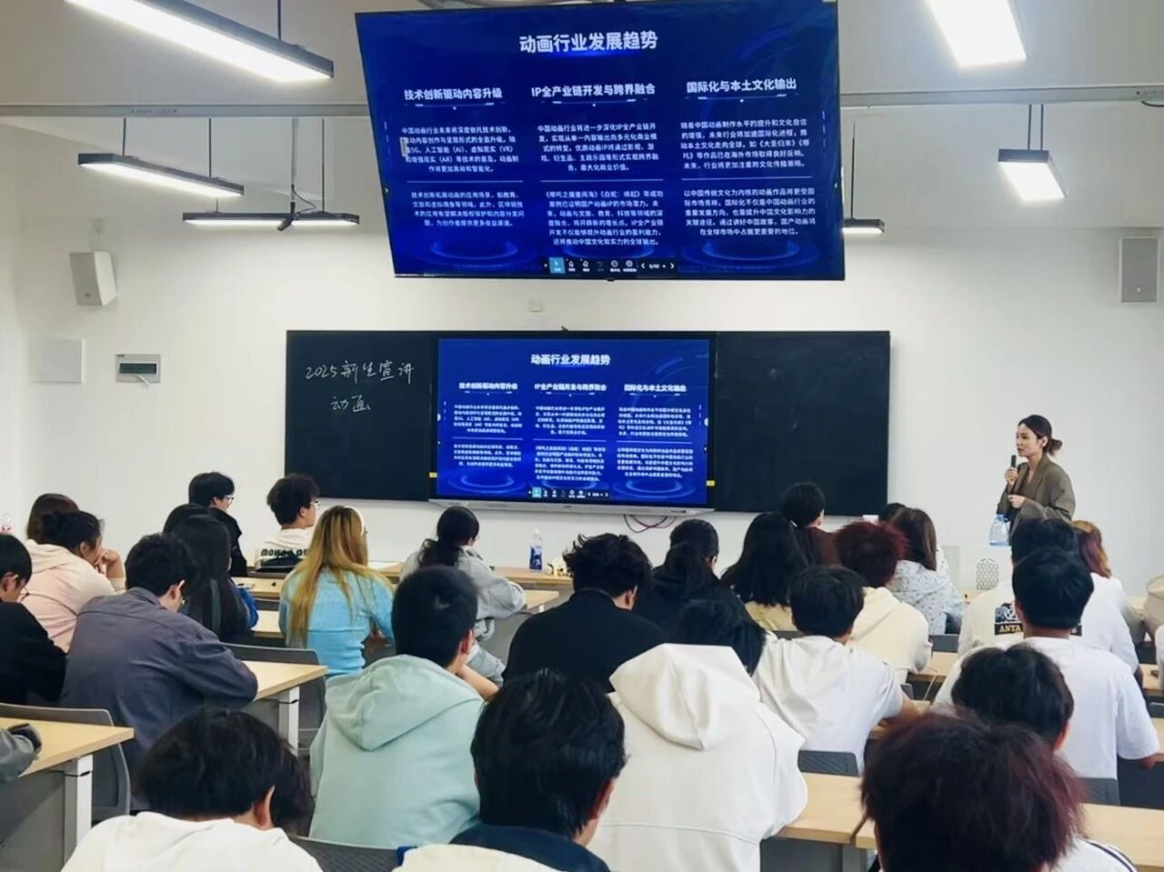 在实践平台上,依托 “行业直通车” 项目,学生可直接参与《我是江小白》《万古剑神》《英雄联盟:云顶之弈》等热门项目,实现 “学习即实践”。此外,崔老师还分析了动画行业 “国际化与本土文化输出”“IP 全产业链开发”“技术创新驱动内容升级” 的三大发展趋势,为新生指明职业方向。