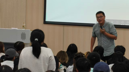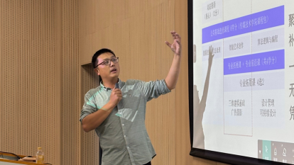 丁老师以“烹饪牛肉”为喻,生动阐述四年教学计划:大一“选材”打基础,大二“调味”学技能,大三“烹制”练项目,大四“成菜”展成果,系统梳理了视觉传达设计专业的课程结构,学院特色及教学计划。他重点分享了项目实操、案例教学等模式,融会理论与实践,激发学生创新能力,提高学生实战能力,以风趣幽默的演讲方式让同学们了解到丰富多样的专业内容。