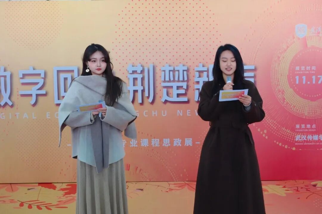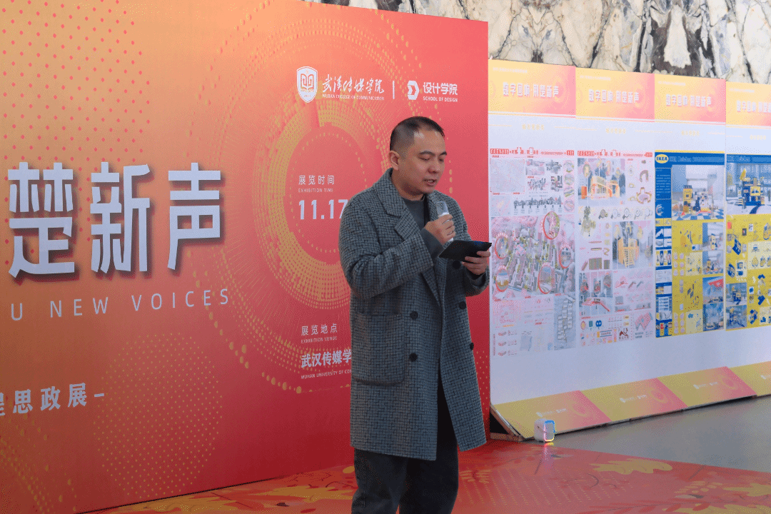 大悟校区党支部书记、综合管理中心主任赵鹏超宣布“数字回响,荆楚新声”课程思政展览开幕。他在致辞中指出,本次展览既是环境设计系落实 “立德树人” 根本任务的生动实践,也是专业教育与思政教育深度融合的具象呈现。期待全体师生能通过这场展览交流互鉴,进一步深化对艺科融合、地域文化传承的思考,让思政育人的成果在校园内外持续传递影响力。