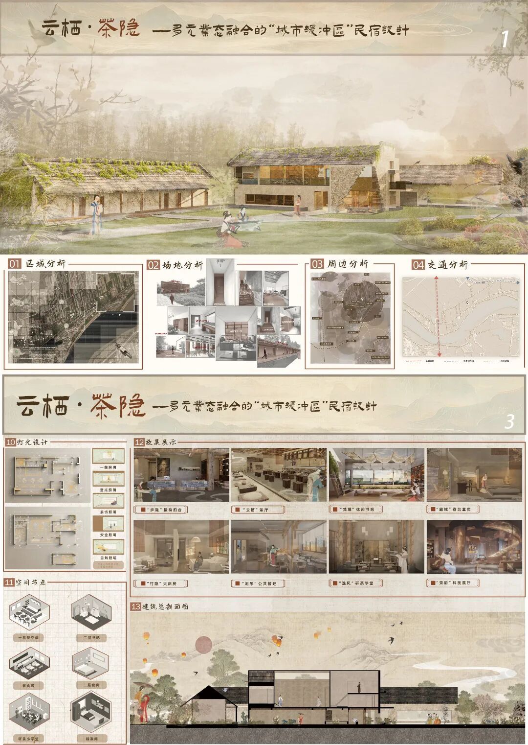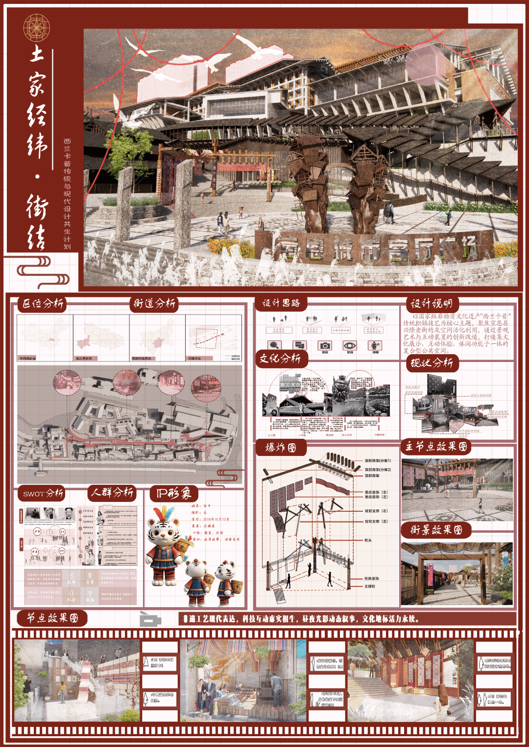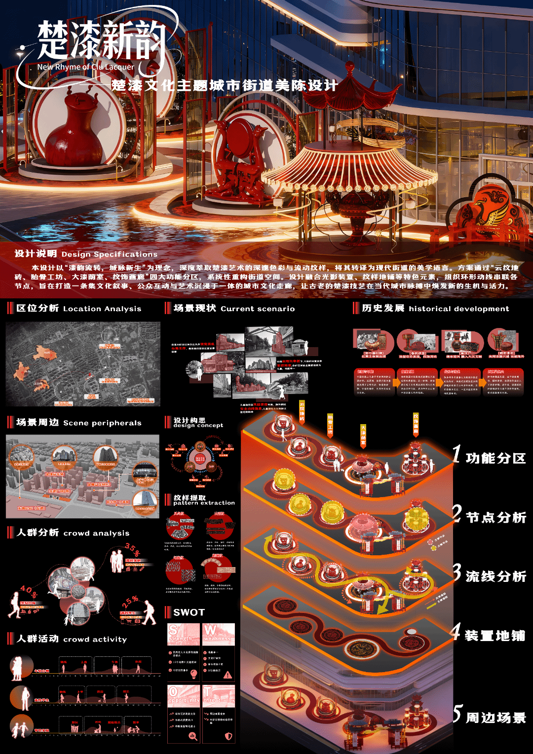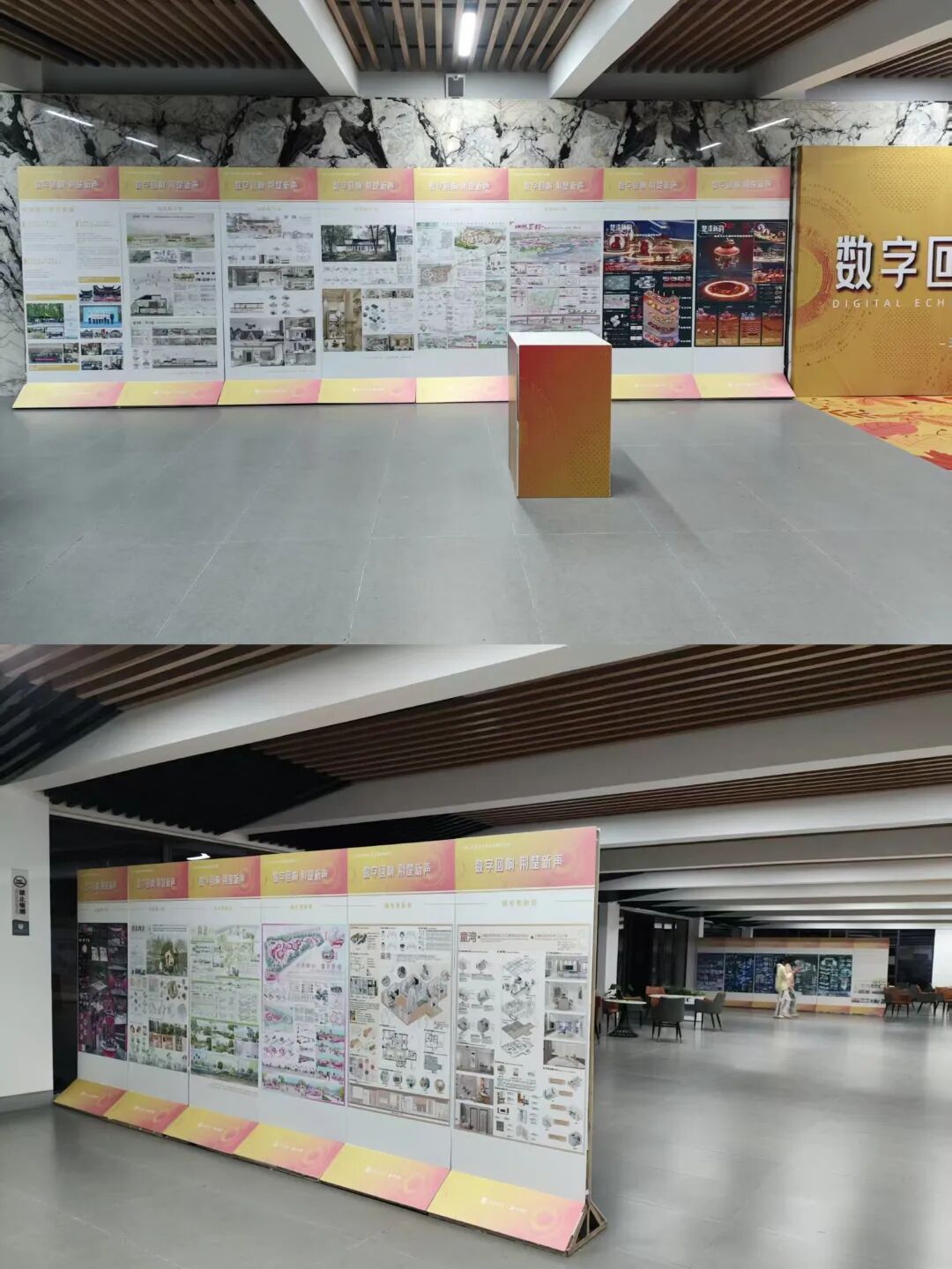 本次“数字回响·荆楚新声”成果展,聚焦于“数字技术”与“地域文化”的碰撞与融合,旨在展现数字时代背景下,青年学子如何重新发现、解读并创造性转化荆楚文化的深厚底蕴。展览汇集了《室内设计原理》、《景观设计原理》、《室内专题设计》、《景观专题设计》、《文化空间室内设计1》、《文化空间景观设计1》、《文化空间景观设计2》、《商业空间景观设计2》、《专业考察》等多门核心与特色课程的教学成果。作品方向涵盖“地域振兴”、“城市更新”、“AIGC赋能” 与 “红色文化” 等多个实践领域,充分体现了学生们在掌握专业技能的同时,主动运用数字化工具,深入挖掘地域文脉,积极回应社会议题的自觉意识与实践能力。