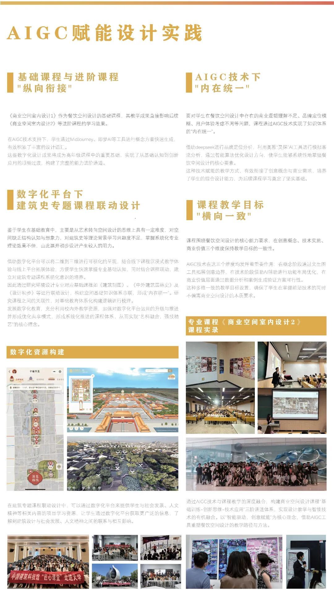 环境设计系主任沈婧介绍本专业作为校级课程思政示范专业,以新艺科建设为切入点,通过“深度融合”推动艺科融合;“拓展场域”加强政企社协同,紧握时代命题,践行“艺术服务社会”的责任担当;“完善闭环”积极推进优秀的课程作品落地为校园景观、社区设施,不断推动课程思政体系化发展,让美育浸润校园、服务社会。