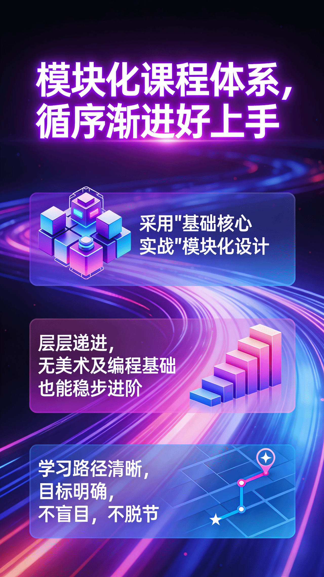 我们构建了 “基础→核心→实战” 的课程体系,6门课程,带你完成技能闭环。