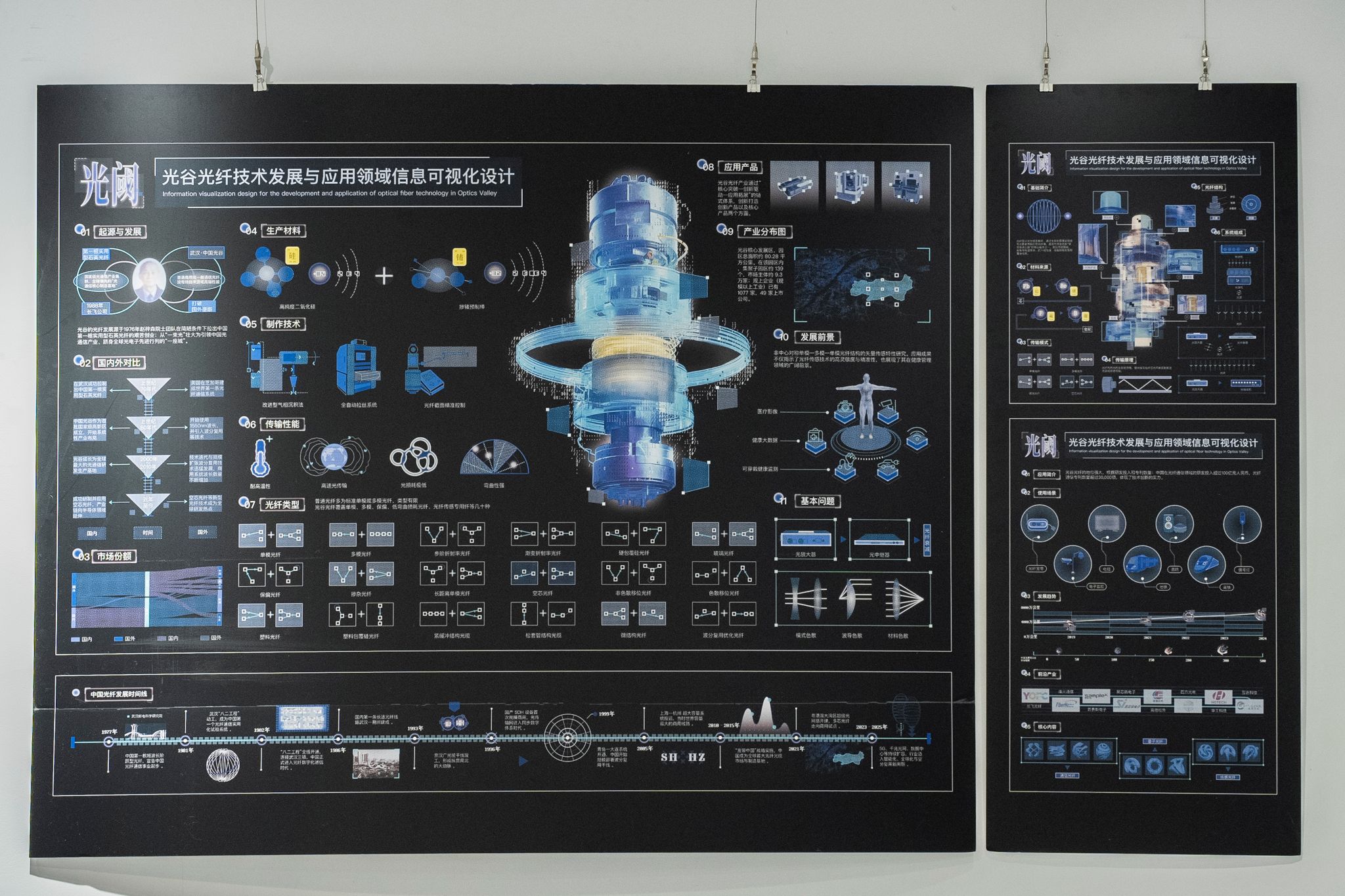 本次展览汇聚125名毕业生的作品,涵盖品牌策划与推广、阅读设计、先锋视觉、包装设计、信息可视化设计五大方向。每一件作品均是对“界·融”的深刻诠释:立足湖北地域文化,创新转译荆楚文脉;洞察社会热点,传递青年声音;借助多维感官交互装置等形式,重构视觉符号、打破视觉边界,探索地域化视觉传播新路径,彰显设计服务生活、赋能社会的价值。