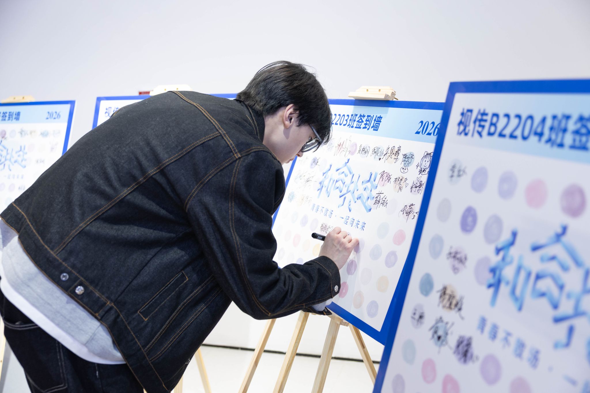 开幕式尾声,全场以温馨合影为毕业展圆满收官。2026届视传学子与师长、同窗并肩而立,用镜头定格四年成长瞬间,快门声里,藏着课堂创作、展厅逐梦的青春,更盛满师生陪伴与同窗情谊。