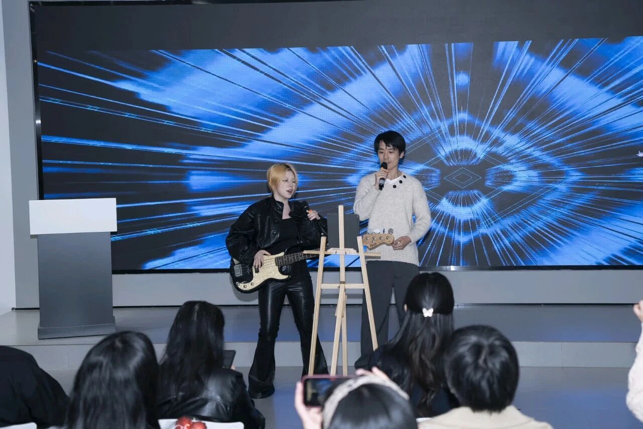视传2304班李子楦、方欣怡两位同学,以轻摇滚合唱的形式惊艳登台。当设计的灵感与音乐的节奏交融,她们用极具感染力的歌声,诉说着视传学子对艺术的赤诚与热爱,在舞台上唱响青春态度,用旋律为这场创意盛宴注入别样温情与力量。