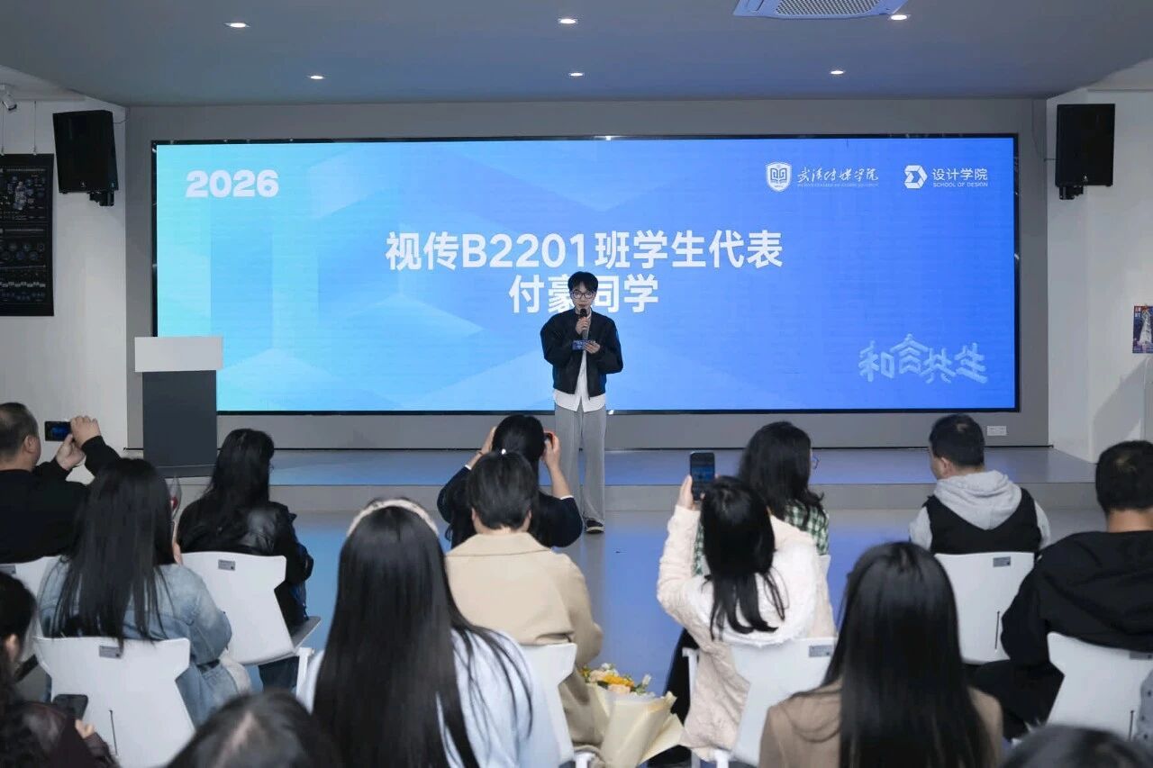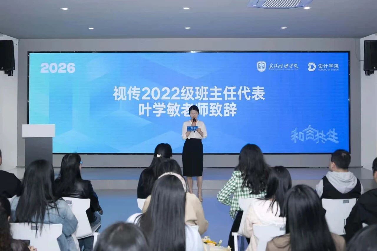 “你们带着对设计的憧憬踏入武传校园,从课堂到展厅,从草稿到成品,每一步成长都印刻着你们的努力与热爱。”郑瑶老师细数与同学们相伴的四年时光:“是你们在熬夜赶作品时的互相打气,在筹备毕业展时的并肩作战,让我见证了视传学子的热血与担当,也成为我最珍贵的青春回忆。”她祝福学子们:“愿你们永远怀揣青春的热血与赤诚,在未来的人生路上,勇敢追梦、向阳而行。无论身处何种境遇,都能保持初心、坚守热爱,在自己的领域里闪闪发光,奔赴属于自己的璀璨人生。”