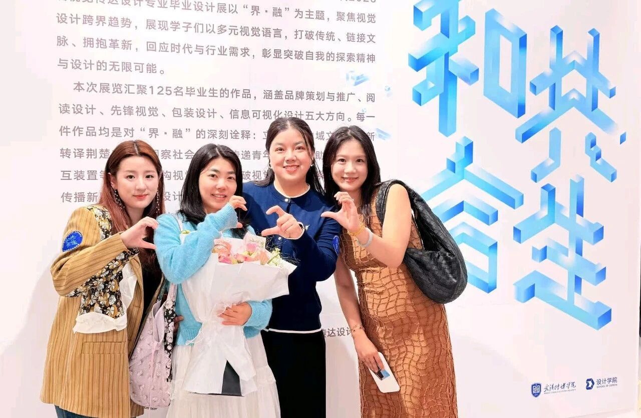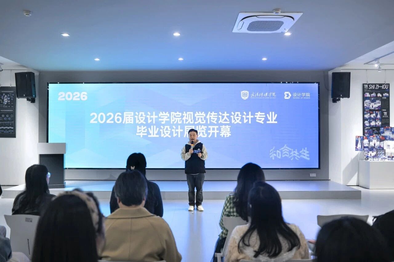 作为视传学子心中亲切的“付姐姐”,系主任付静老师始终以专业与用心,为每一个设计梦想保驾护航。她以本届毕设核心主题“界·融”为切入点点赞毕业生:“你们以‘界·融’为创作内核,在品牌设计、书籍视觉、先锋创意、包装视觉、信息可视化等五大方向,立足湖北地域文化,打破传统视觉边界,探索文化基因与视觉技术的有机融合,以多元形式重构传统符号,彰显了视传学子的创新魄力与责任担当。”她寄语全体2026届视传学子:“今天的毕业设计展,是你们用四年专业积淀,向时代交出的‘界·融’答卷。未来,请继续以设计为桥,做打破边界的探索者、跨界融合的践行者,让‘界·融’的设计理念,在更广阔的舞台上绽放光芒,母校永远为你们骄傲!”