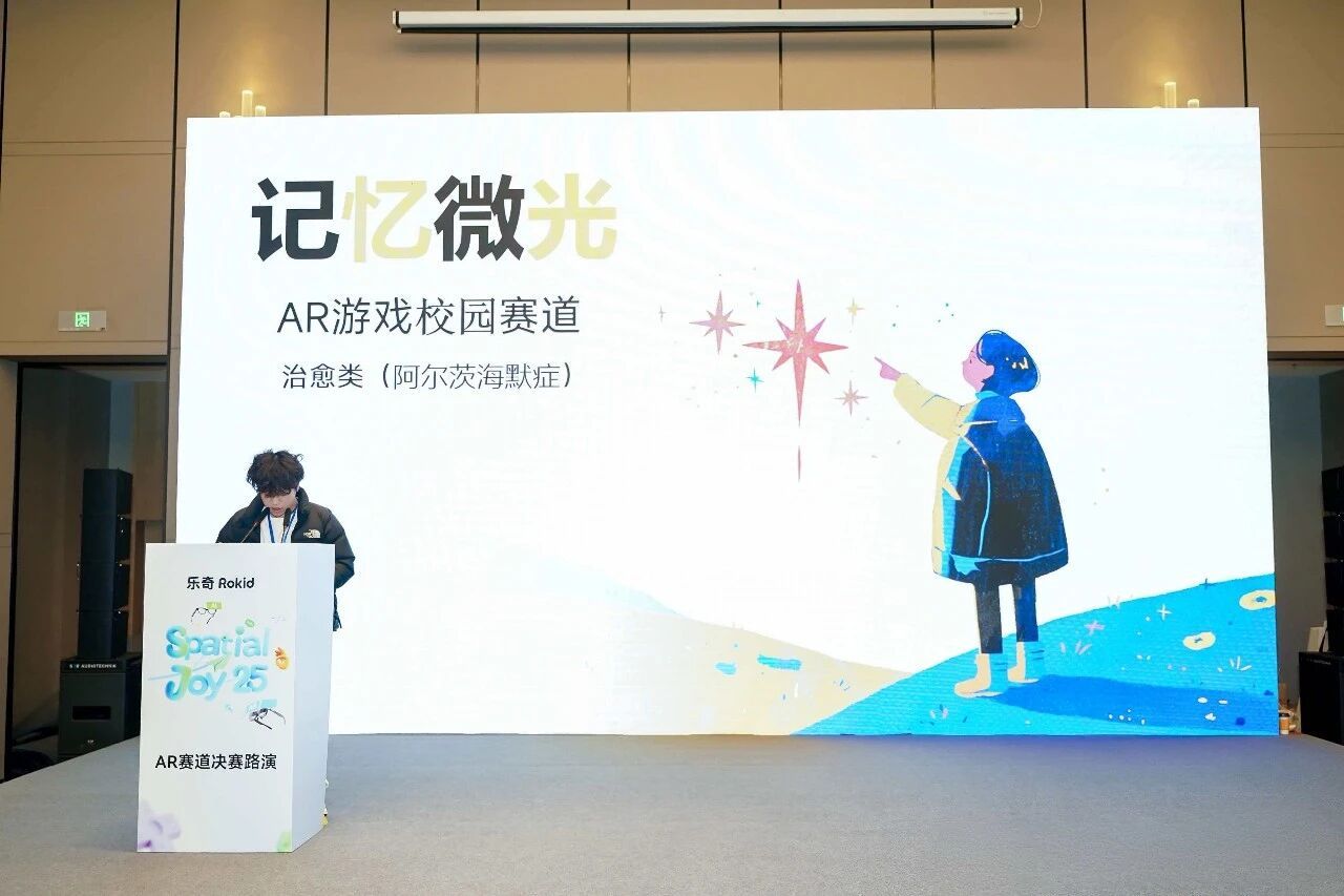 在教师徐泽、朱沁宇的指导下,由设计学院学生韩尚书、龙世海、孟宇轩和传媒技术学院学生孔嘉琪组成的参赛小组,凭借其AR游戏作品《记忆微光》深刻的公益立意与独特的艺术风格,最终荣获人气奖第三名。