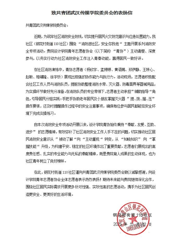 志愿路上,感恩同行。社区也向武汉传媒学院的志愿者们致来感谢信,字里行间满是信任与鼓励,既是对我们的嘉奖,也是继续前行的动力,完整致谢如下,最后让我们一起感受这份双向奔赴的美好!