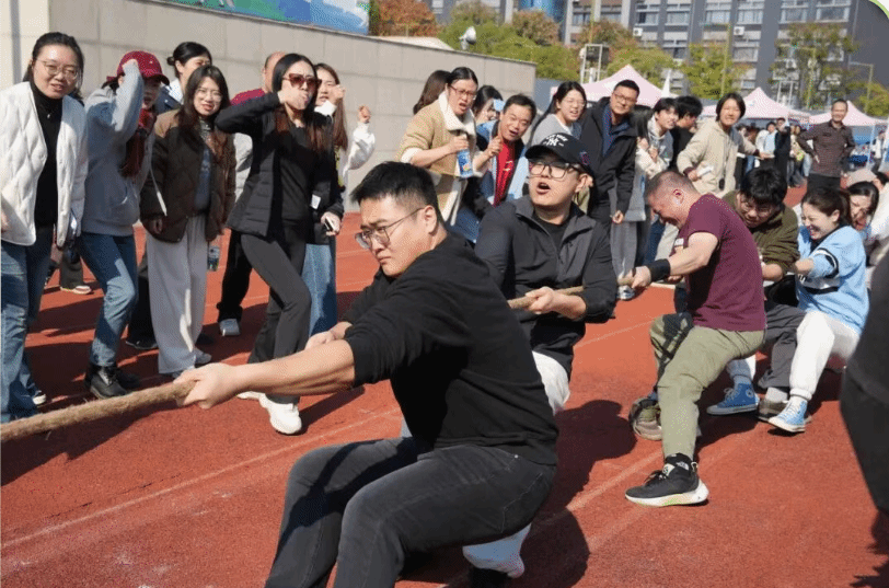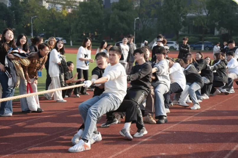 作为压轴项目,每个学院派出8男8女组成战队,以三局两胜淘汰赛制角逐冠军。赛前队员紧握绳索、身体后倾,哨声响起后,“一二!拉!”的口号声与呐喊声交织,绳索标志物来回拉锯,坚持到最后的队伍赢得胜利,尽显团队凝聚力与拼搏意志。