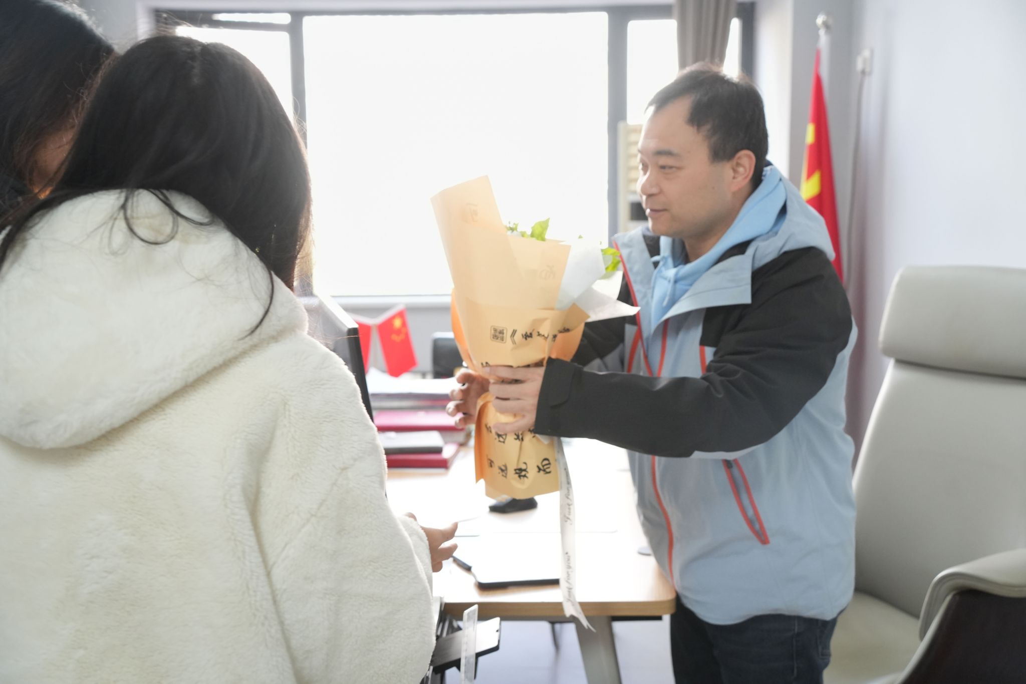 一句句“老师您辛苦了”,一束束满载心意的手作鲜花,一张张字迹温暖的贺卡,让办公室里满是温情。老师们接过礼物时的欣慰笑容与学子们的腼腆问候相映,定格成师生间最动人的画面。