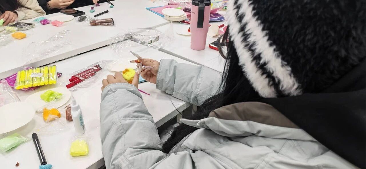 设计学院大悟校区C栋一站式“指尖塑愈,画境抒怀”活动于2025年12月3日在大悟校区T5教学楼5105举办,快乐粘土,凝聚温暖。