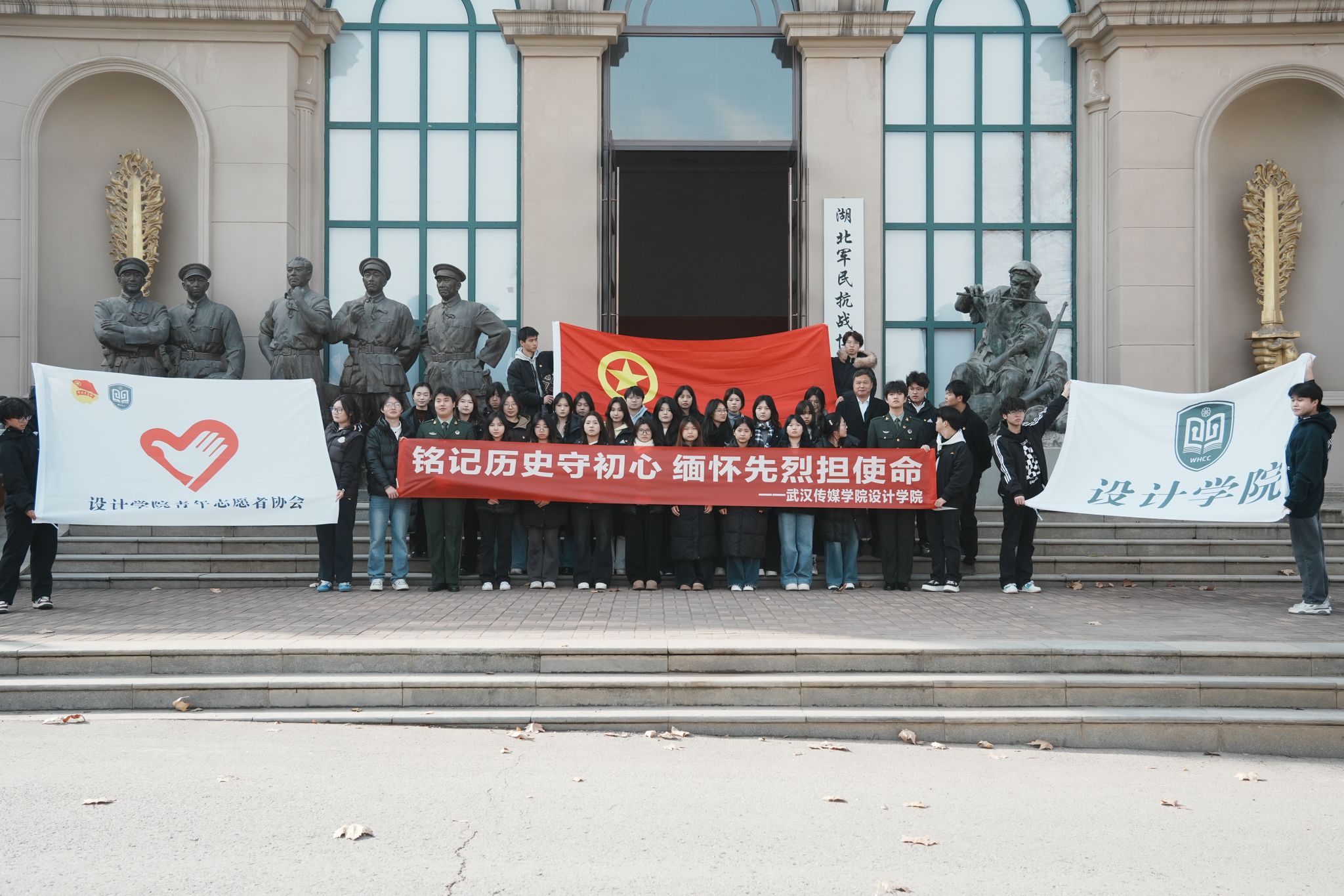 历史昭昭,警钟长鸣;缅怀先烈,吾辈自强。2025年12月13日,南京大屠杀死难者国家公祭日之际,武汉传媒学院设计学院以“铭记历史缅怀先烈珍爱和平”为主题,开展国家公祭日纪念活动。活动通过评审选拔设计学院群众、团员、党员及退役军人学子代表,与全院师生共同参与,深切缅怀南京大屠杀及侵华战争中惨遭杀戮的死难同胞,传承爱国精神,凝聚和平力量。
