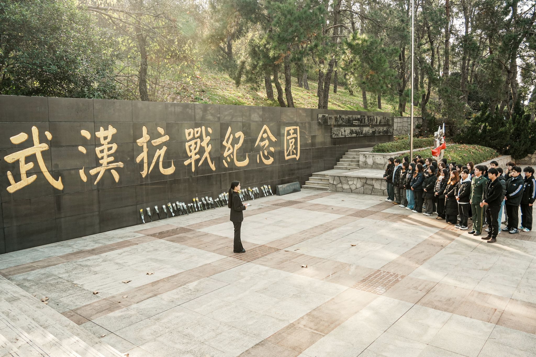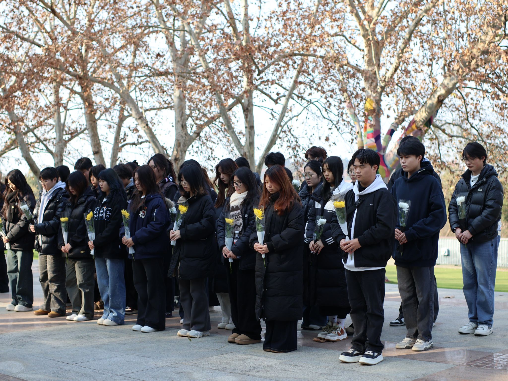 01学子铭记历史,鲜花致敬逝者