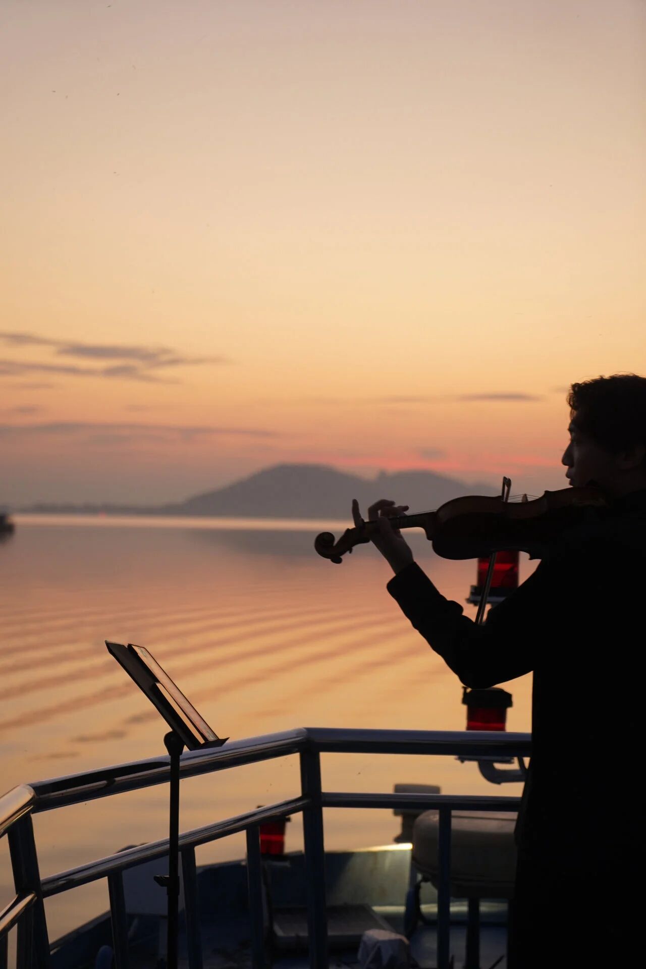 清晨,当城市还未完全苏醒,武传的师生们便已齐聚凌波门,登上游船,满怀期待地等待着日出的那一刻。随着游船缓缓前行,微风拂面,带来湖水的清新气息,让人精神为之一振。