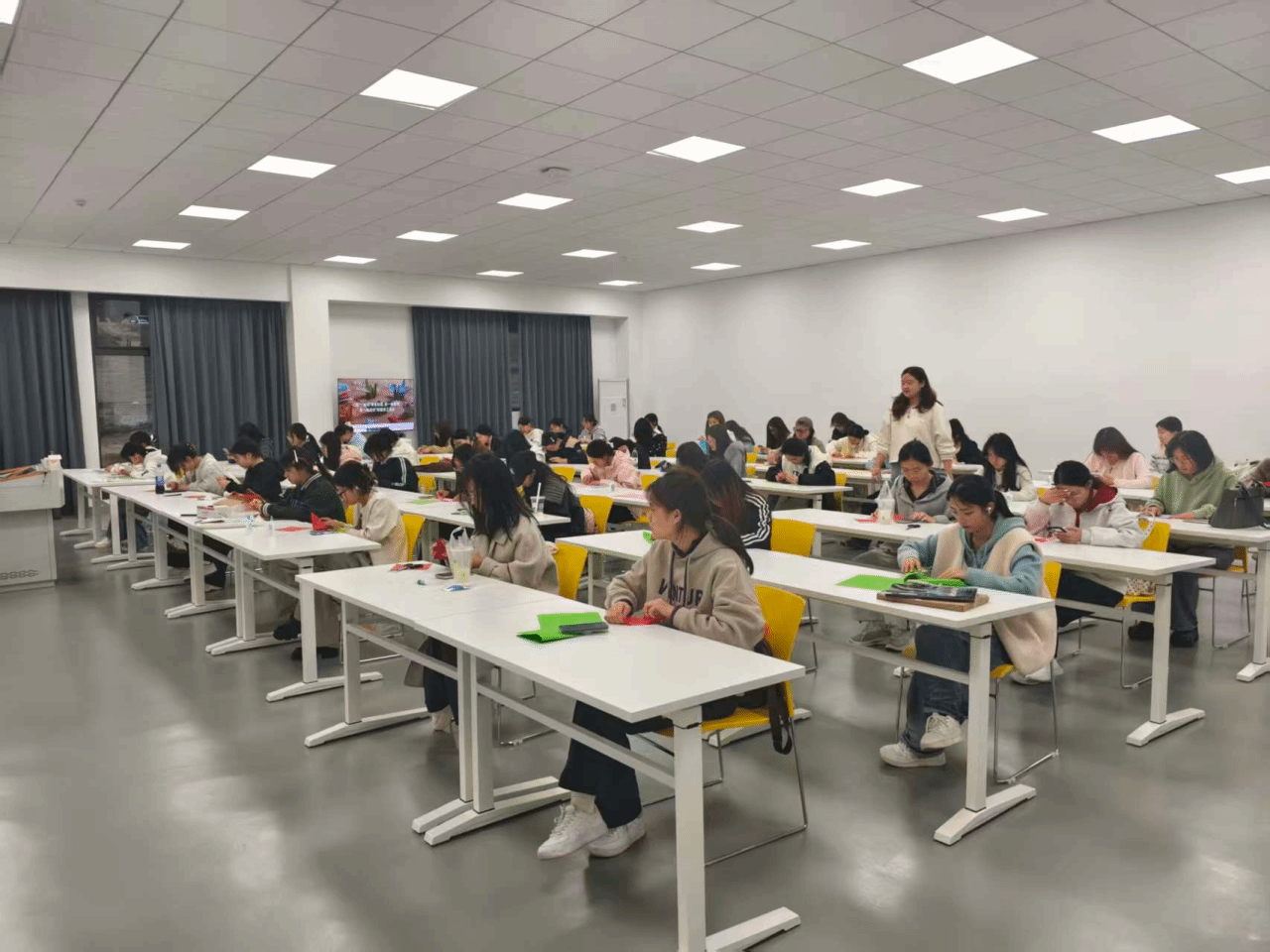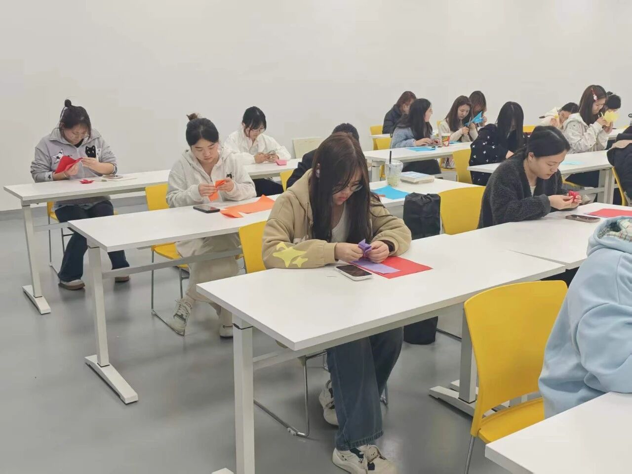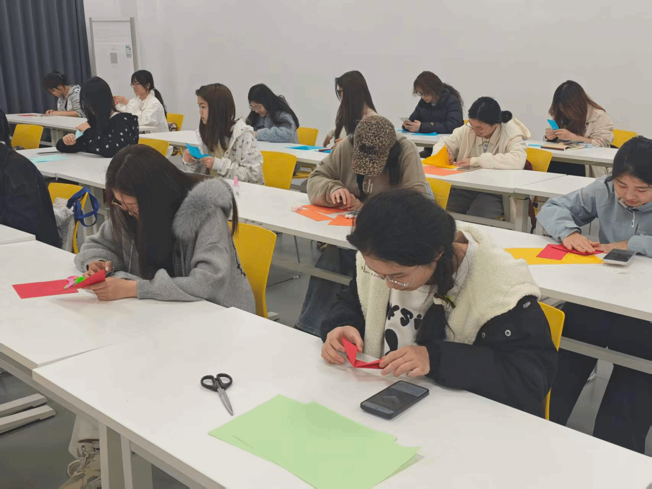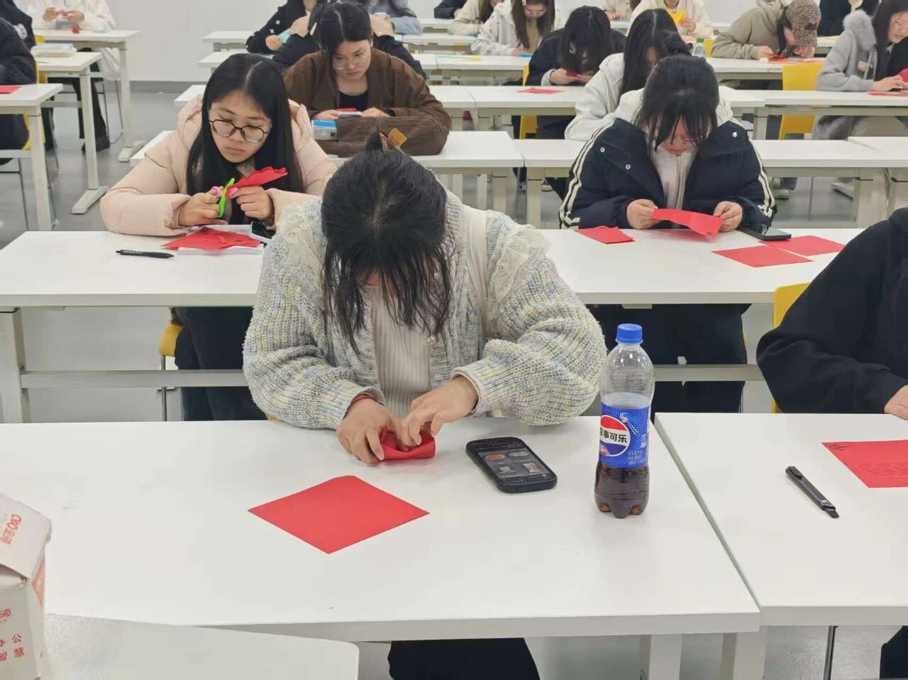 静心创作:同学们沉浸于个人创作之中,在翻折与裁剪间沉淀心绪,用指尖的温度赋予纸张生机,在独处的时光里感受手工的治愈力量。