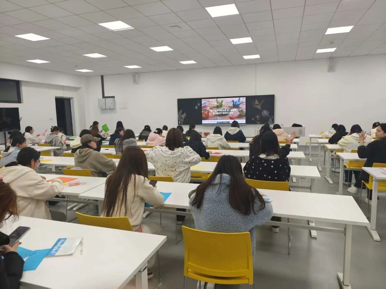 2026年3月25日,在大悟校区C栋“一站式”学生社区T5教学楼5104开展了以“纸折春色,指尖藏繁花”为主题的“折一纸春意·赴一场繁花之约”活动。